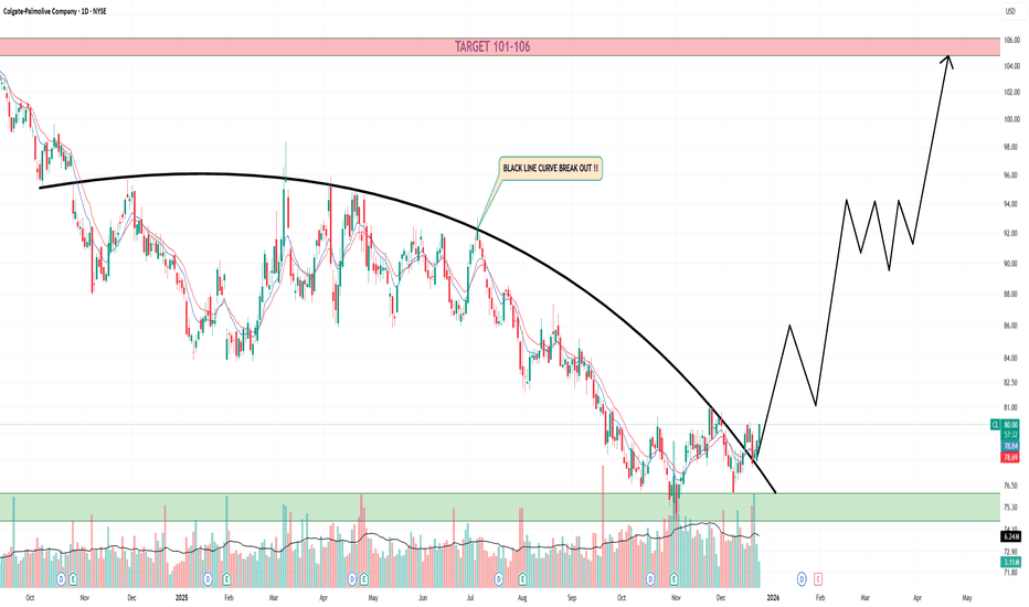 Colgate - CLThis is a rounding top → long decline, now breaking above the down-sloping resistance.