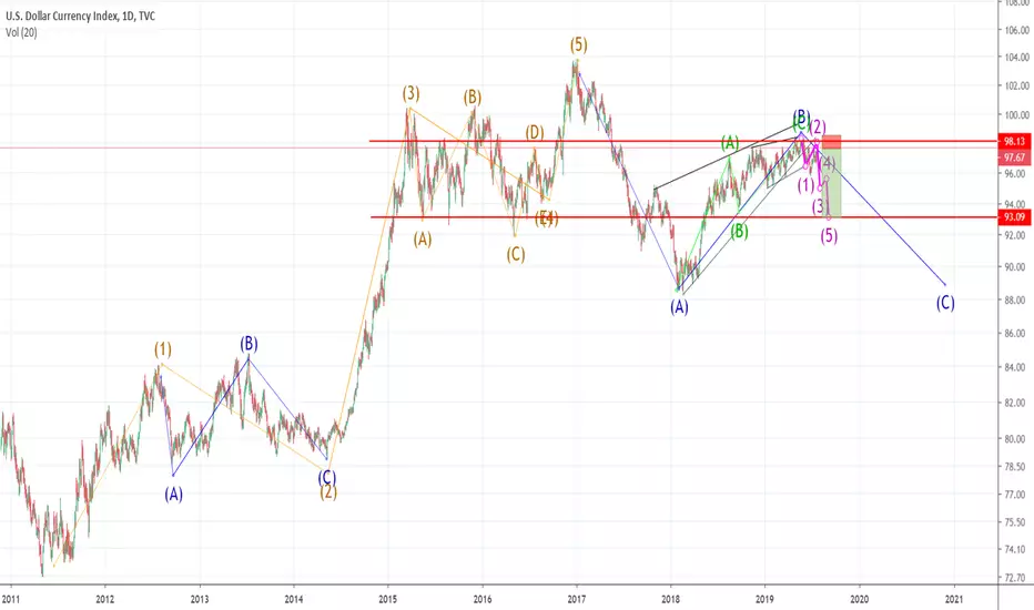 Elliott Wave points to large corrective action down in C targeting 94-93 range