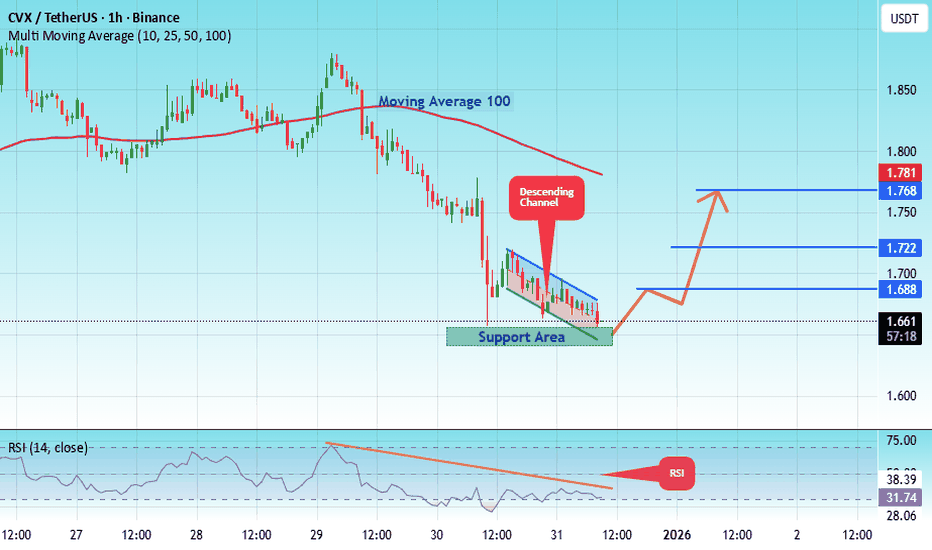CVX/USDT 4H AnalysisThe price is forming a round bottom pattern after touching the lower boundary of the descending channel.