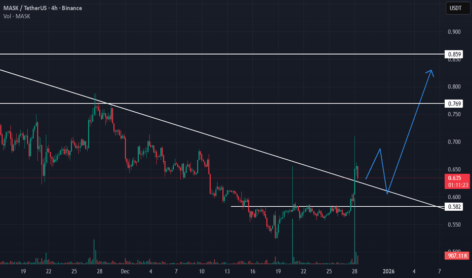 If MASK closes below 0.93 on the weekly chart, this support zone would break, signaling a strong bearish continuation.